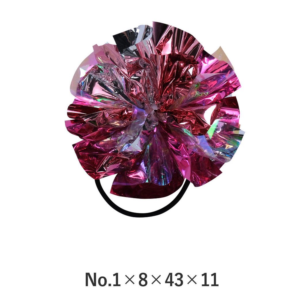 スターポンポンと同じフィルムで作る、チアならではの髪飾り。ミニサイズのポンポンにヘアゴムが付いていて、髪はもちろん腕やバッグにつけても華やかです。