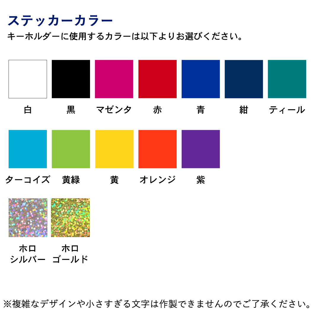 ご希望の位置に個人名を入れられます。個人名書体は以下よりお選びください。④、⑤は頭文字のみ大文字になります。