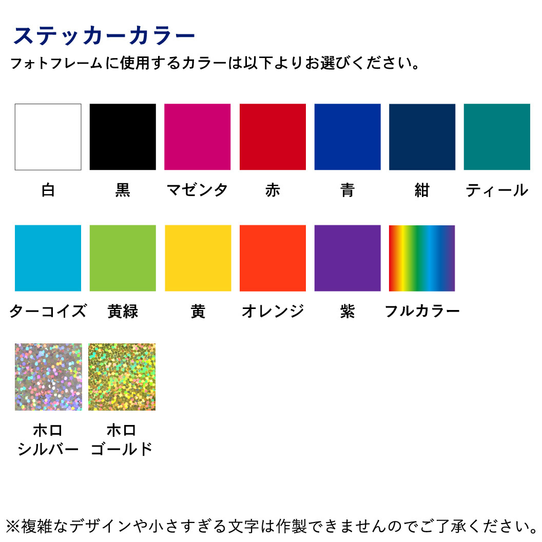 ご希望の位置に個人名を入れられます。個人名書体は以下よりお選びください。④、⑤は頭文字のみ大文字になります。