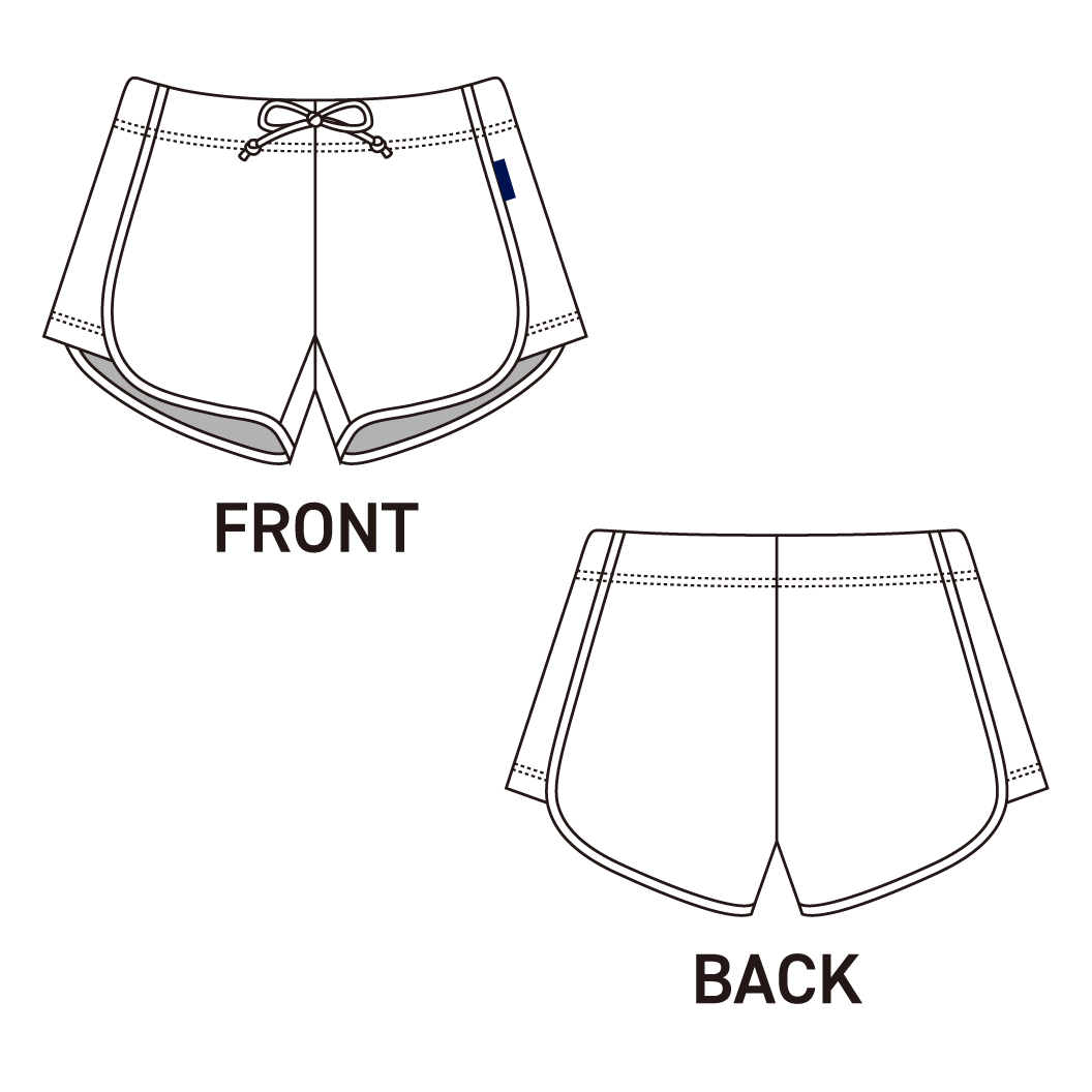 ドライメッシュ素材のオーダーデザイン短パン。裾がラウンドしていて、サイドに切り替えがあるアクティブタイプです。