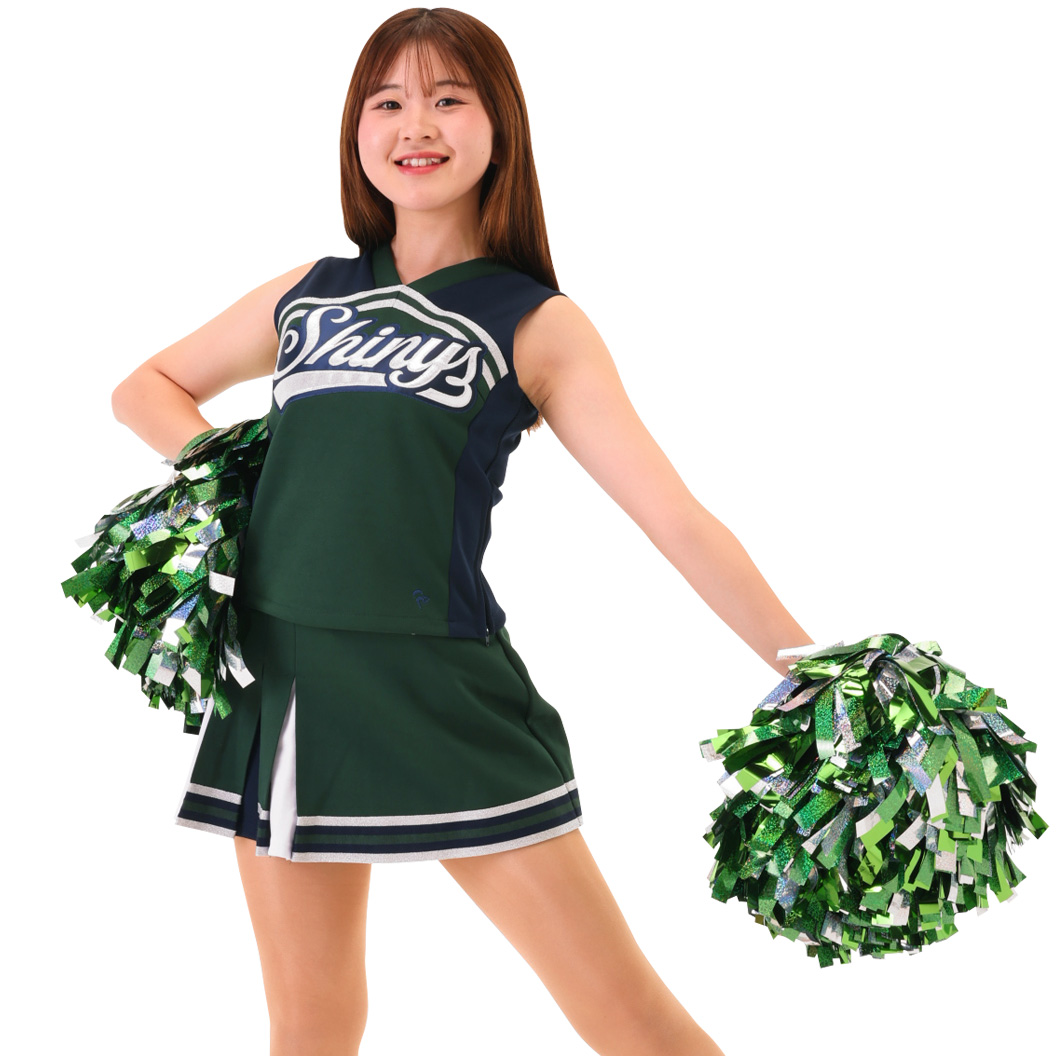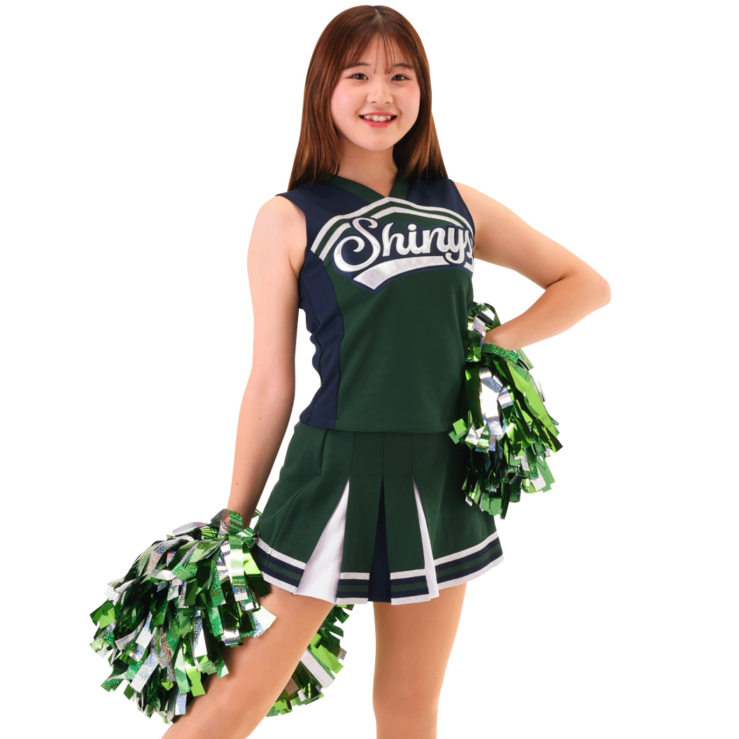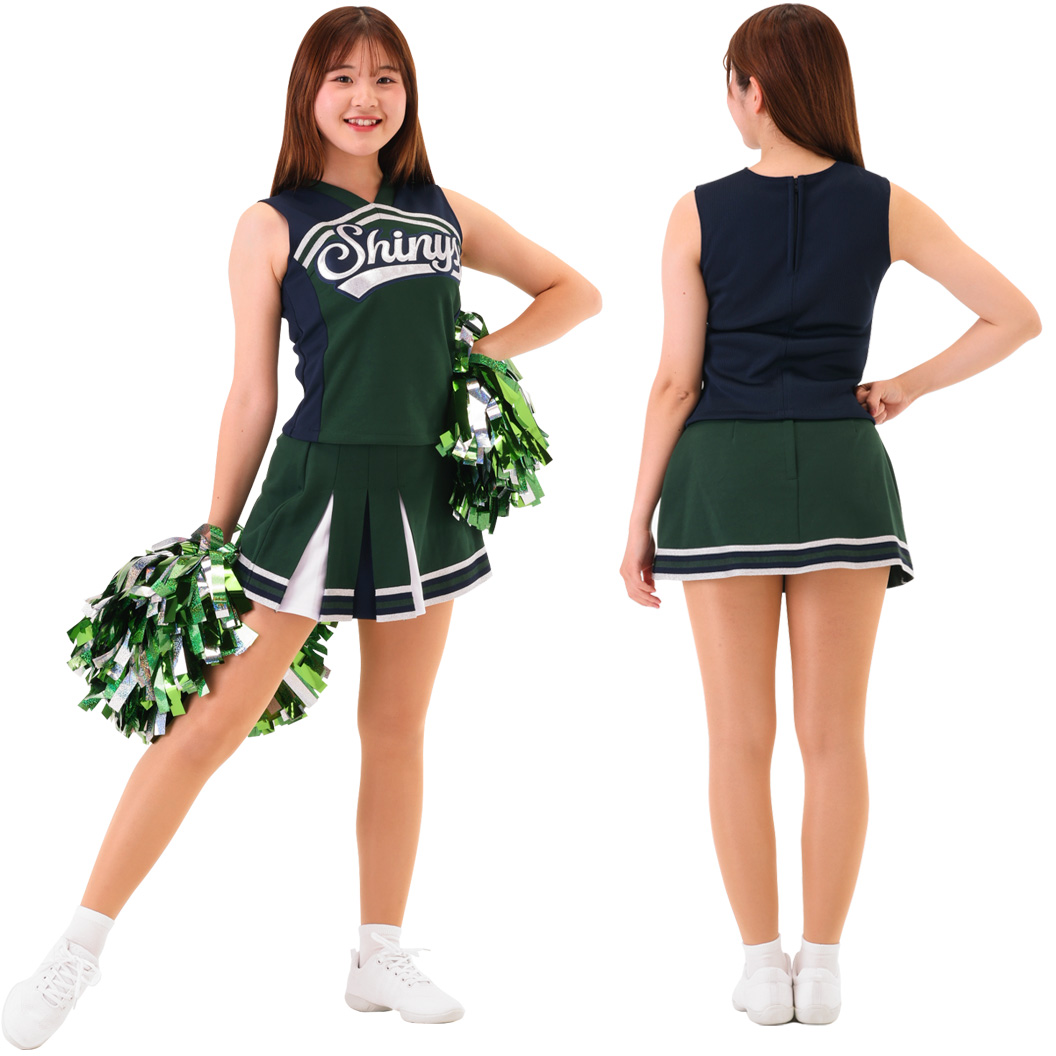 チアリーダー定番のベスト&スカートスタイルが選べるファブリックマークユニフォームは、しっかりとしたジャージ生地を使用し背中はフィット感の良いリブ生地になっています。