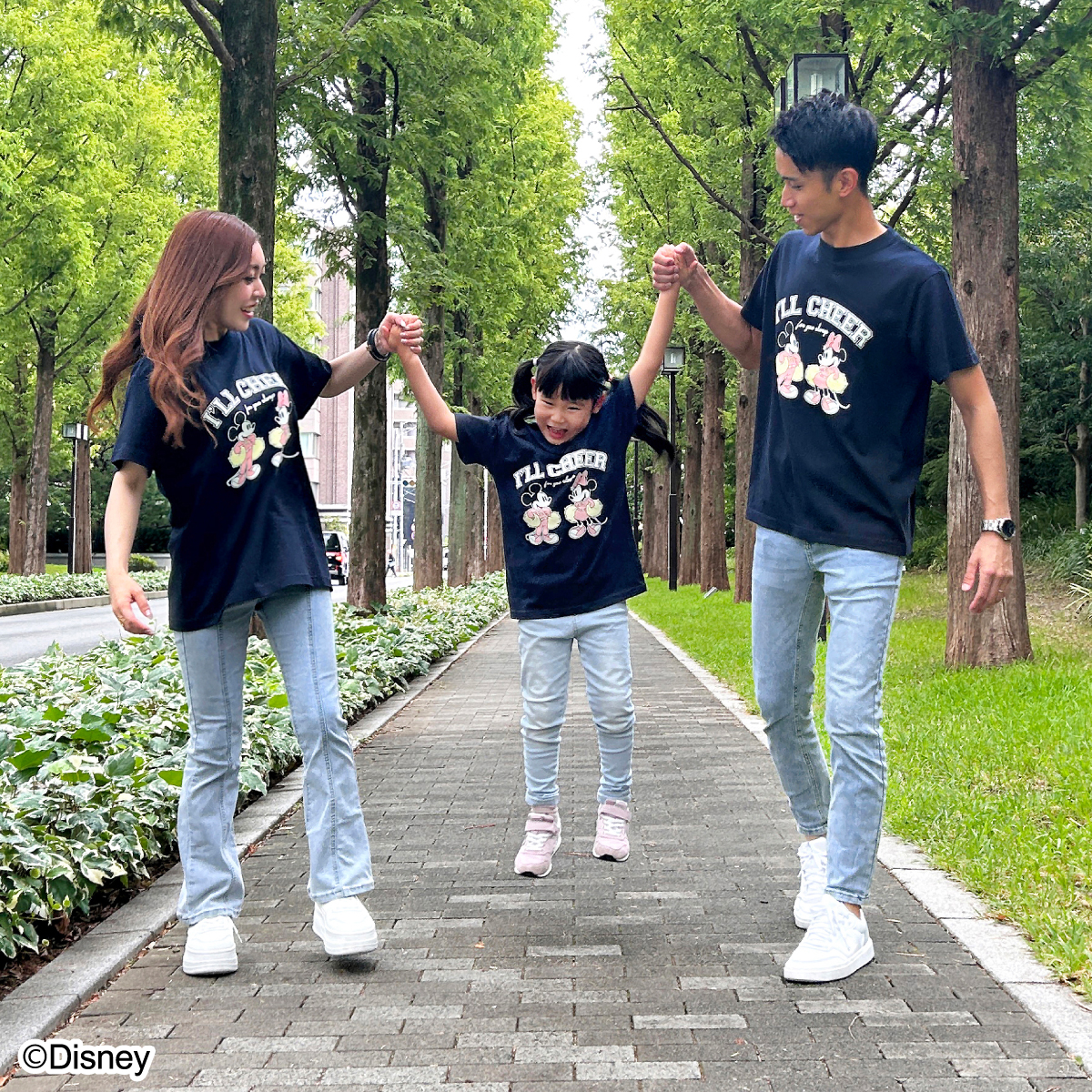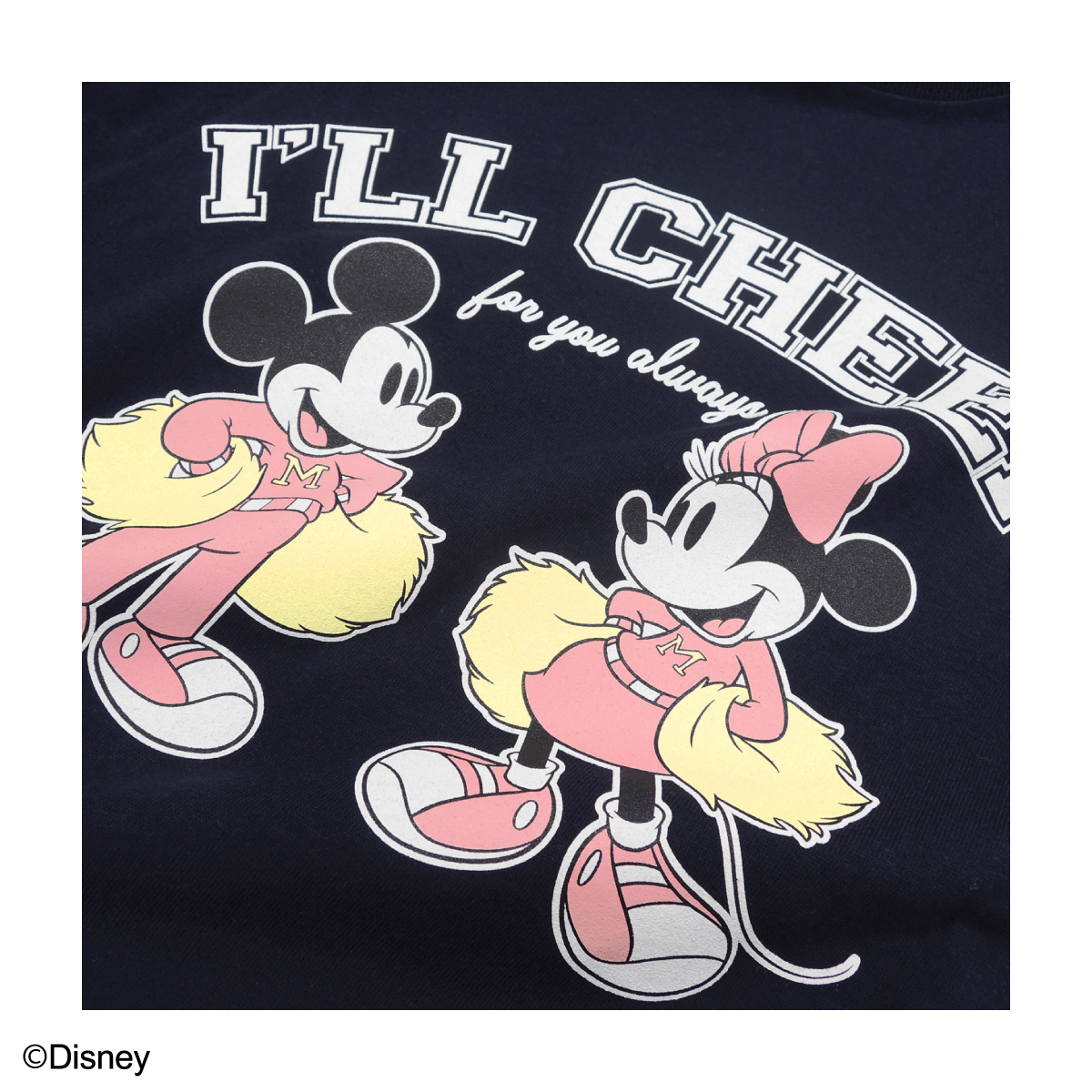 ミッキー&ミニーデザインのTシャツが登場☆チアリーダースタイルのミッキー&ミニーが応援のメッセージと一緒にプリントされています。