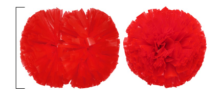 ダンスポンポンはビニール平紐のような薄くて透明感のあるフィルムを使用したポンポン。